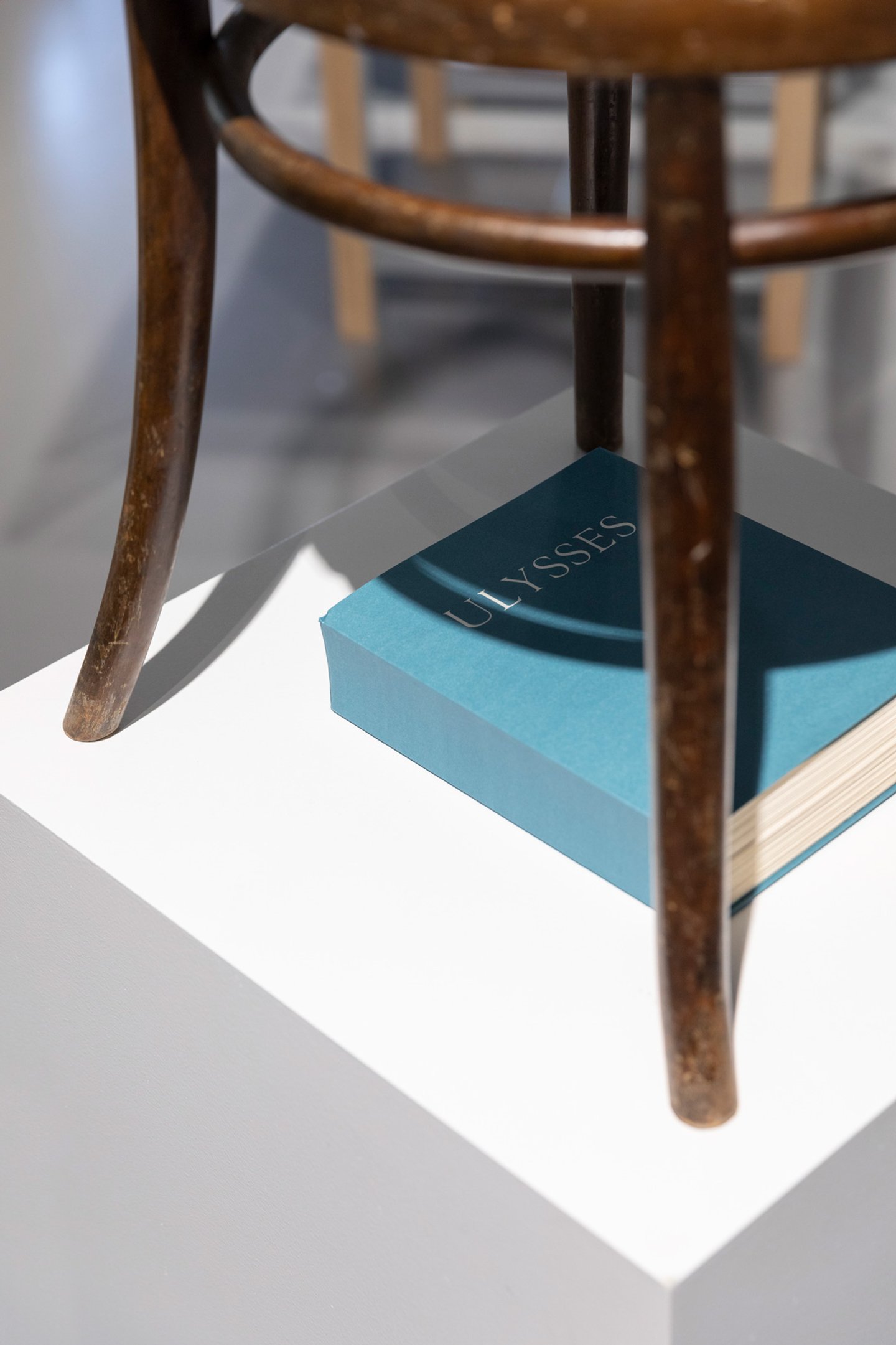 ‘Joyce … had brought with him a package containing his copy of Ulysses, and placed it under his chair’ (Richard Ellmann, James Joyce, 1959). Exhibition view of Usylessly, edition one at HEAD Geneva, 2022